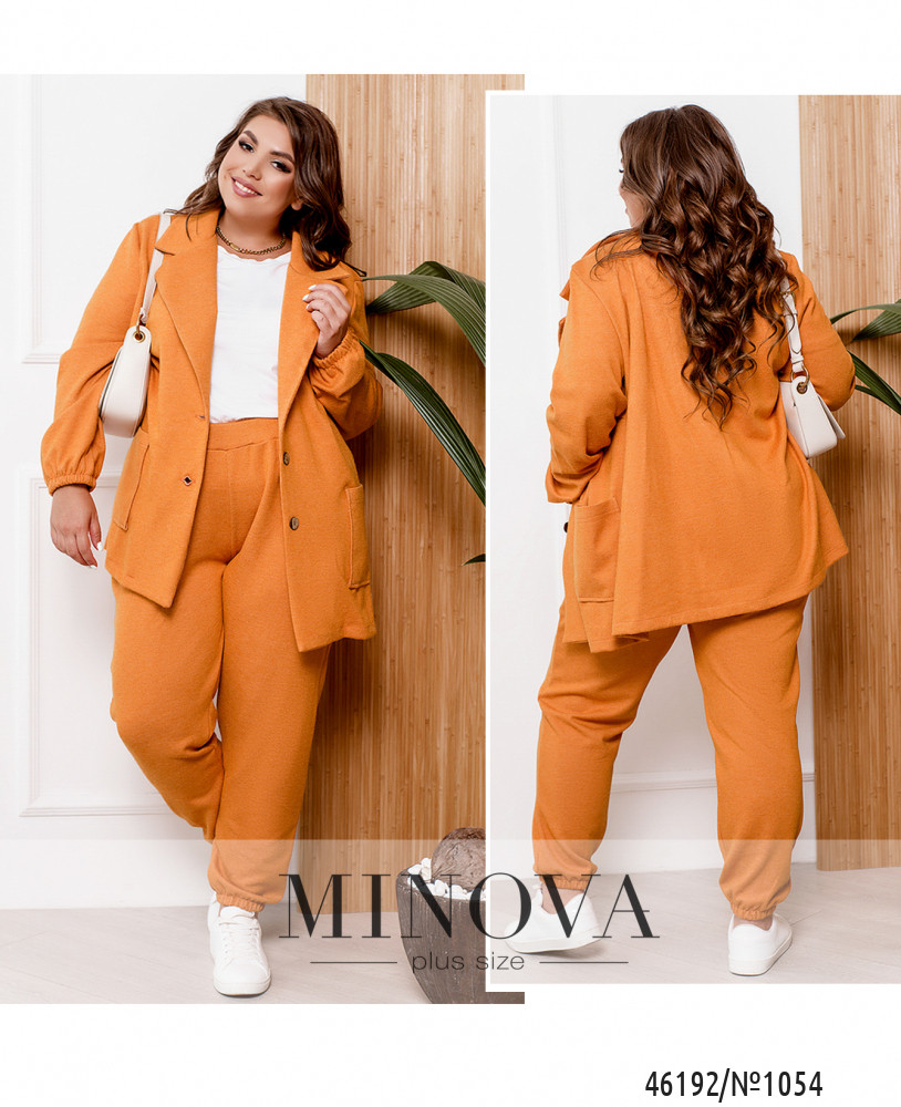 Этот однотонный деловой костюм с элементами в стиле casual может составить основу всего гардероба. Классический однобортный жакет без подкладки, застегивающийся на пуговицы, дополнен накладными карманами и резинкой на рукавах вместо манжет. В комплект также входят брюки с карманами в боковых швах и резинками, вшитыми по линии талии и на штанинах внизу. Пояс НЕ входит в комплект.