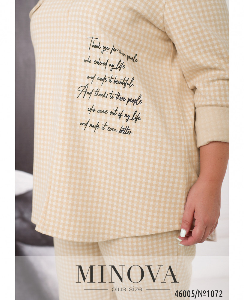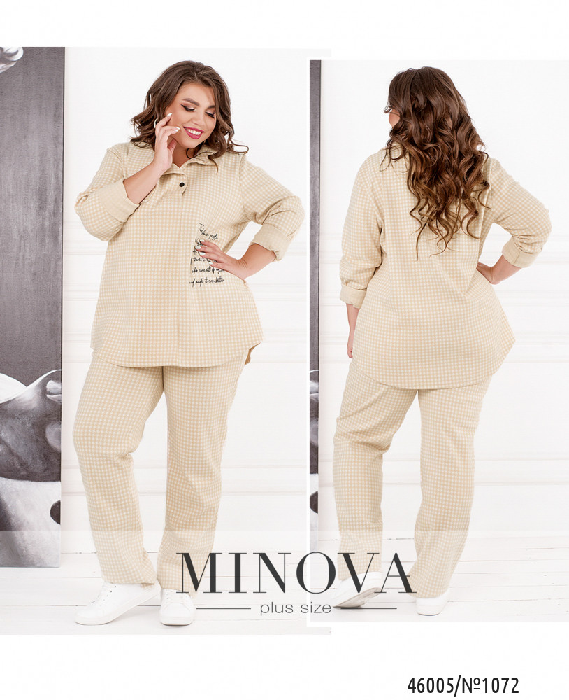 Комфортный клетчатый костюм, состоящий из рубашки и брюк, отличается удобством и практичностью. Яркая рубашка с длинными рукавами и воротником, изюминкой которой является ассиметрично вшитая планка с пуговицами и клапан, имитирующий карман, на груди, идеально дополнена минималистичными брюками на резинке с карманами в боковых швах.