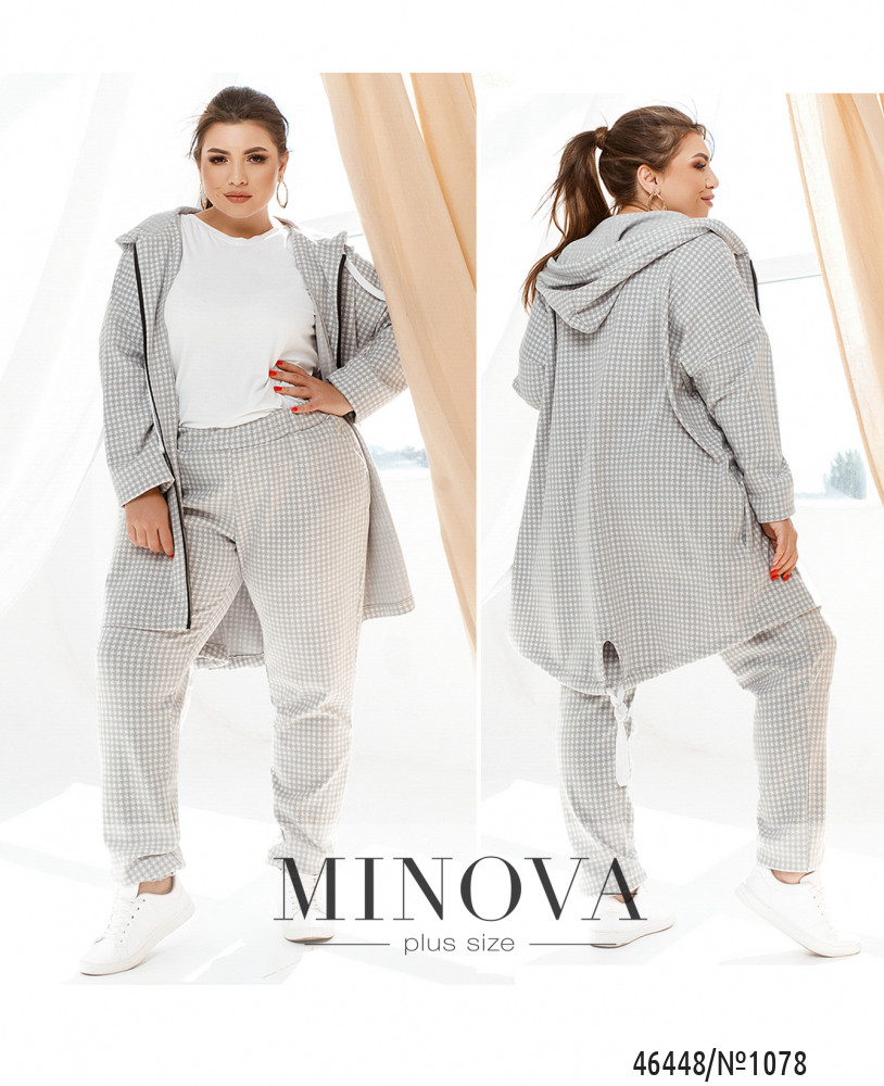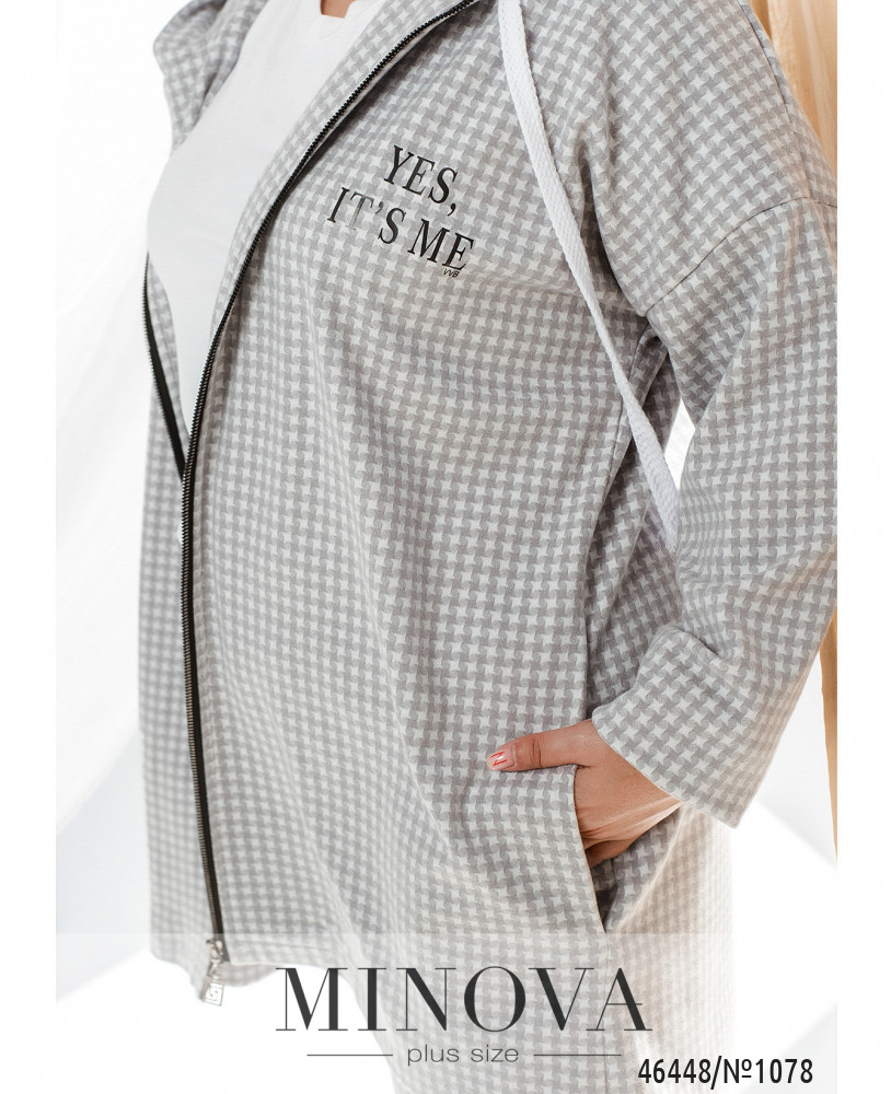 Женственный и мягкий костюм в стиле casual порадует поклонниц практичной одежды на каждый день. Комфортные брюки-джоггеры с карманами и резинками, вшитыми по линии талии и по низу штанин, гармонично дополняет удлиненная туника с капюшоном и карманами, застегивающаяся на змейку спереди. По низу туники вставлен шнурок, завязанный на узелок сзади. Пояс НЕ входит в комплект.