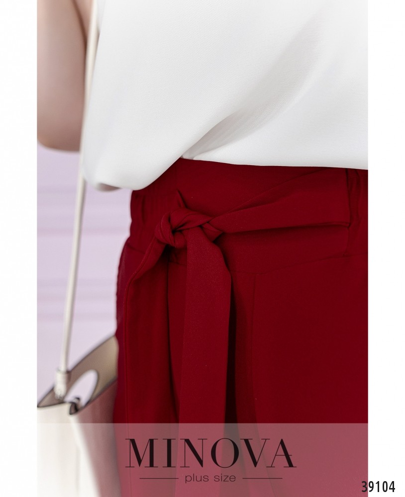 50 р-р: длина брюк по внутреннему шву 76см, длина брюк по внешнему шву с учетом пояса 102см, ОТ - 80см, ОБ -112см.