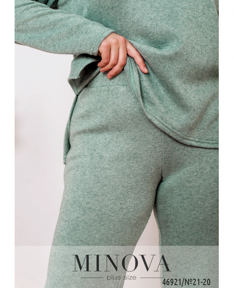 Мягкий и монохромный костюм, выполненный из ангоровой ткани, можно носить вместе или разделить, создавая различные образы с другими вещами. В комплект входят минималистичные брюки на резинке, которые идеально дополняет лаконичная кофта с полукруглым вырезом горловины и рукавами с приспущенной линией плеч.
