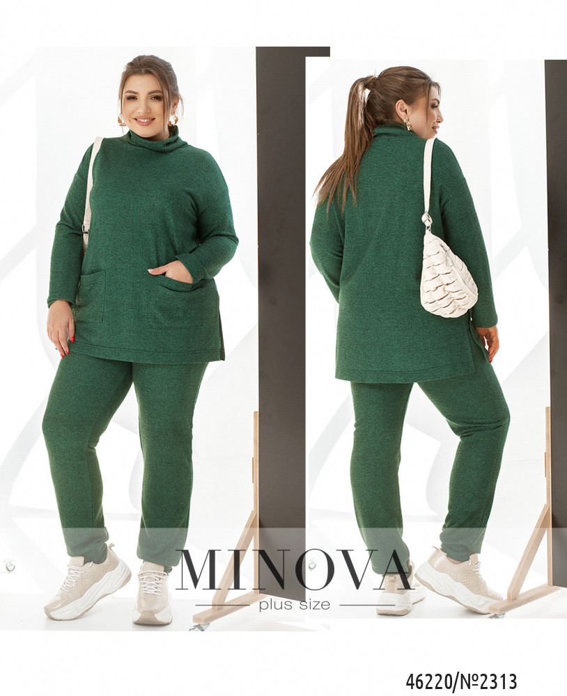 Яркий костюм минималистичного кроя является поистине уникальной вещью, ведь он подходит всем, независимо от фигуры и возраста. Комплект состоит из туники с высоким мягким воротником и длинными рукавами, а также лаконичных брюк в тон на резинке с карманами. Этот костюм можно носить вместе или разделить, создавая различные образы с другими вещами.