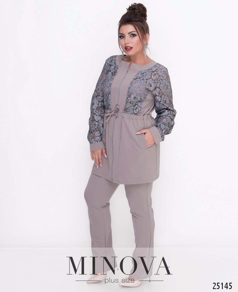 Костюм-двойка из удлиненной курточки на молнии и зауженных