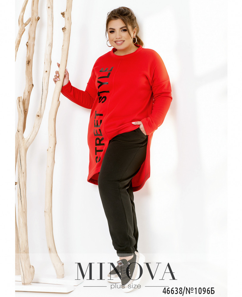 Контрастный спортивный костюм, дополненный принтами, отлично сочетается с кроссовками и объемными джинсовыми куртками. В комплект входят лаконичные брюки-джоггеры с карманами в боковых швах и резинками, вшитыми по линии талии и по низу штанин, а также удлиненная туника-свитшот с ассиметричным низом, дополненная длинными рукавами с приспущенной линией плеч. Пояс НЕ входит в комплект.