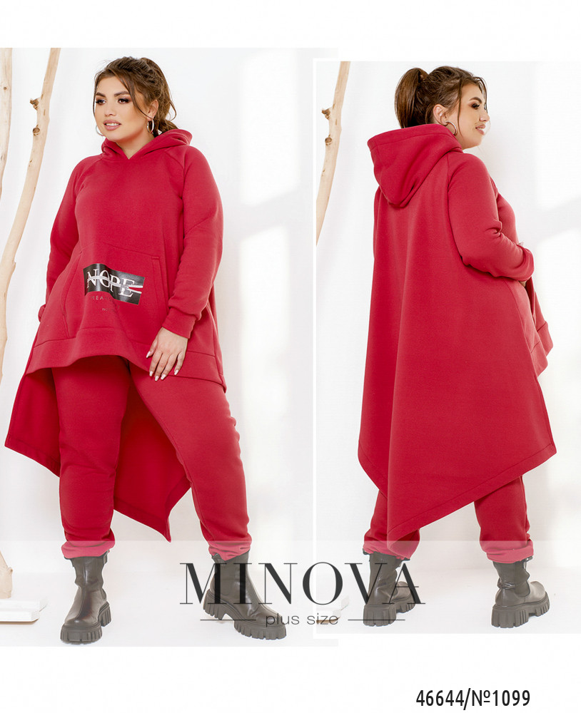 Яркий спортивный костюм нестандартного кроя не только дарит уверенность и комфорт, но и подчеркивает индивидуальный стиль. Минималистичные брюки-джоггеры с карманами в боковых швах и резинками, вшитыми по линии талии и по низу штанин, идеально дополняет необычная свободная туника с капюшоном и карманом-кенгуру, привлекающая внимание в первую очередь ассиметричным подолом. Пояс НЕ входит в комплект.