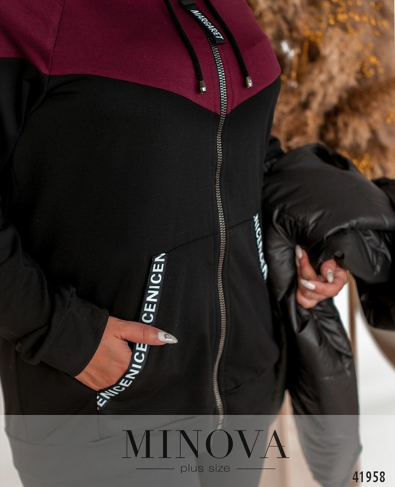 Спортивный костюм 3ка №17-227-черный-марсала