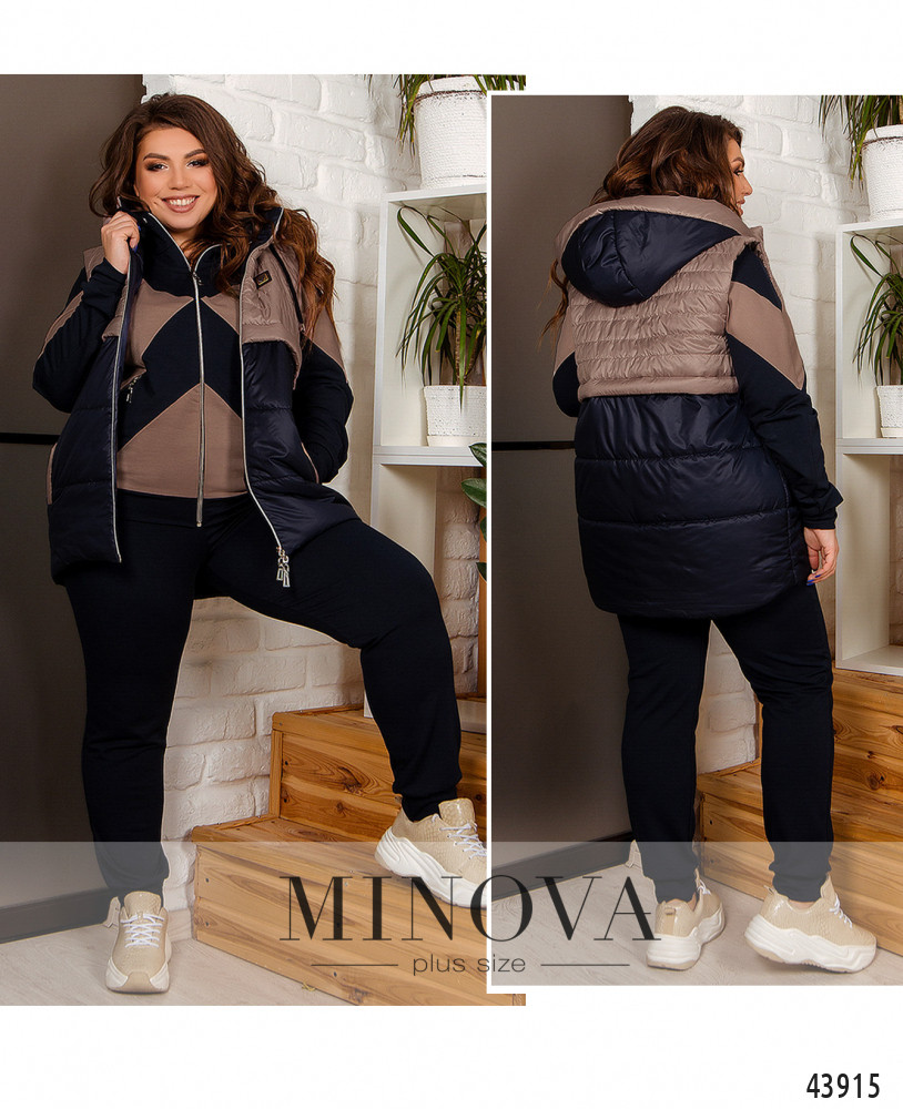 Ткань: жилет - плащевка, подкладка, утеплитель - синтепон (100грм), костюм - трикотаж двунить
