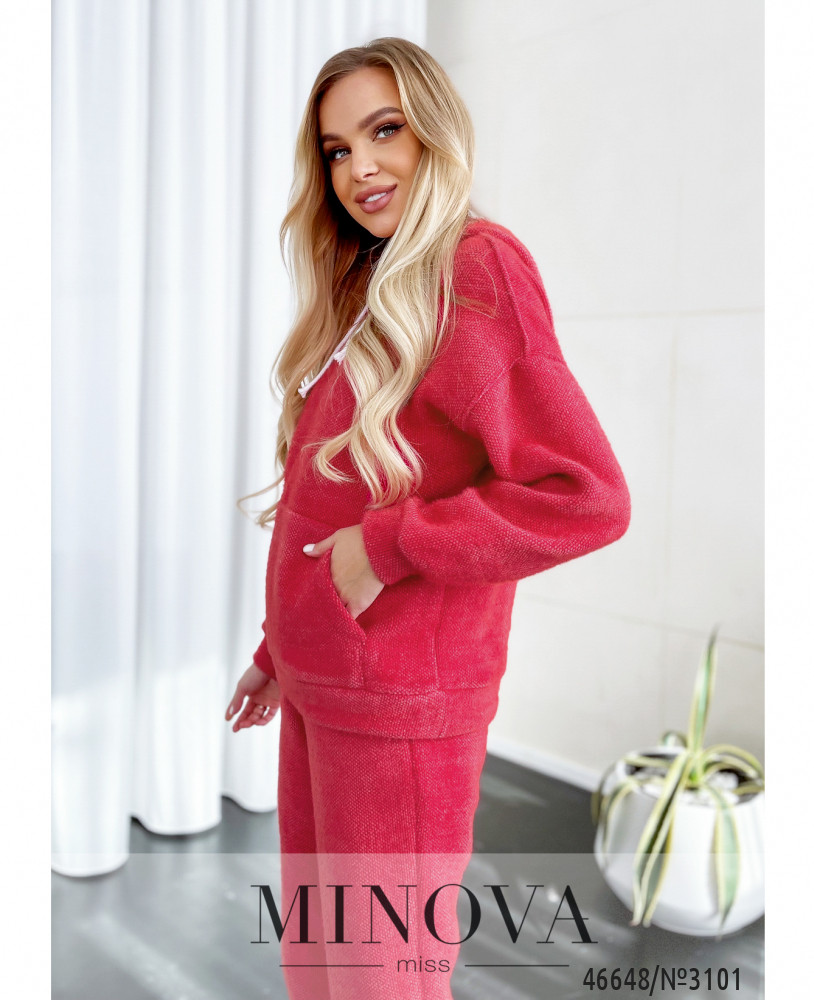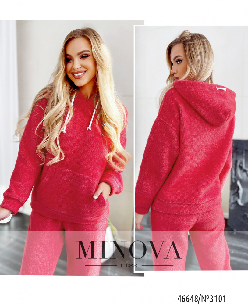 Мягкий минималистичный спортивный костюм отлично сочетается с кроссовками и большими джинсовыми куртками. В комплект входит однотонное худи с капюшоном и длинными рукавами с манжетами, а также лаконичные брюки-джоггеры с карманами и резинками, вставленными по линии талии и по низу штанин.