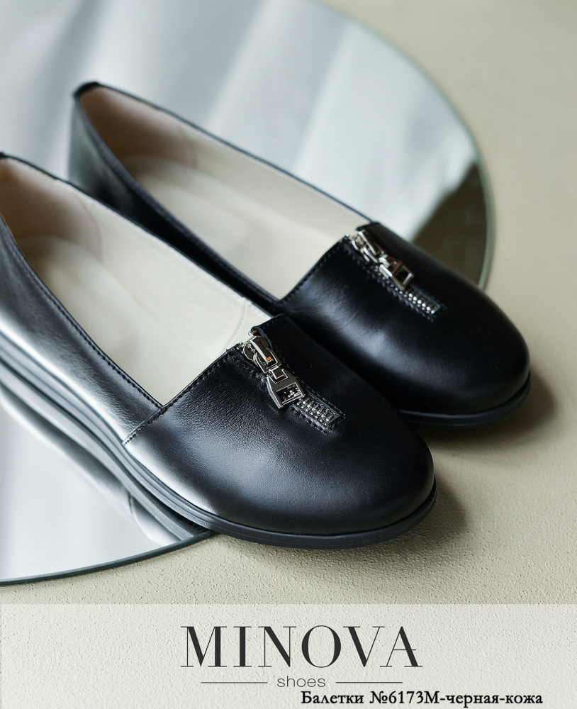 Стильные балетки из натуральной кожи с декоративной крупной молнией на подъёме. Без застёжек, подошва невысокая, с фигурным рифлением протектора. Носок отрезной.