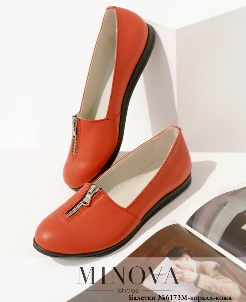 Стильные балетки из натуральной кожи с декоративной крупной молнией на подъёме. Без застёжек, подошва невысокая, с фигурным рифлением протектора. Носок отрезной.