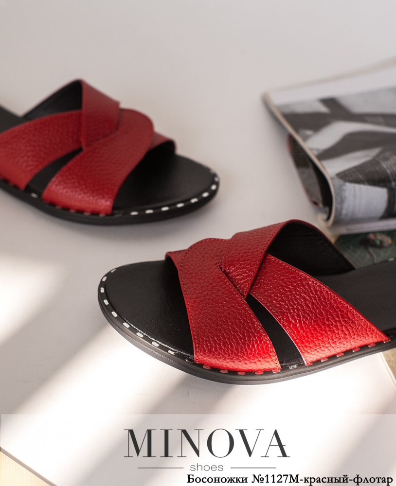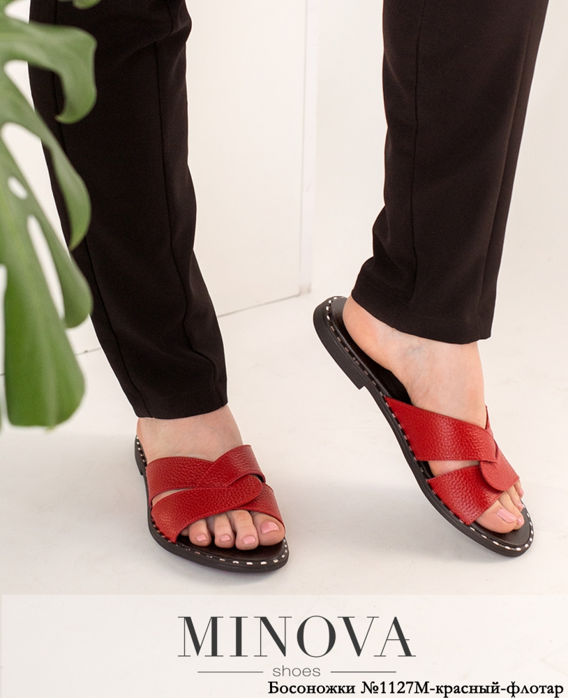 Минималистичные и очень практичные босоножки с плоской устойчивой подошвой, декорированной металлическими заклёпками, и удобным мягким кожаным верхом, состоящим из двух широких переплетённых "лент".