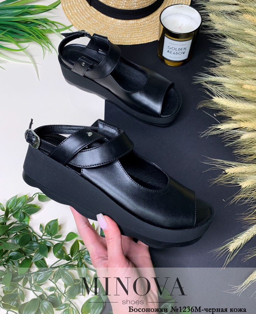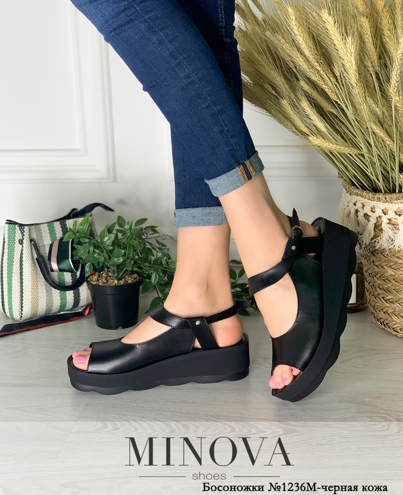 Кожаные босоножки на двухцветной рифленой платформе, с открытой пяткой и ремешком под щиколоткой. Внутри кожаная стелька.