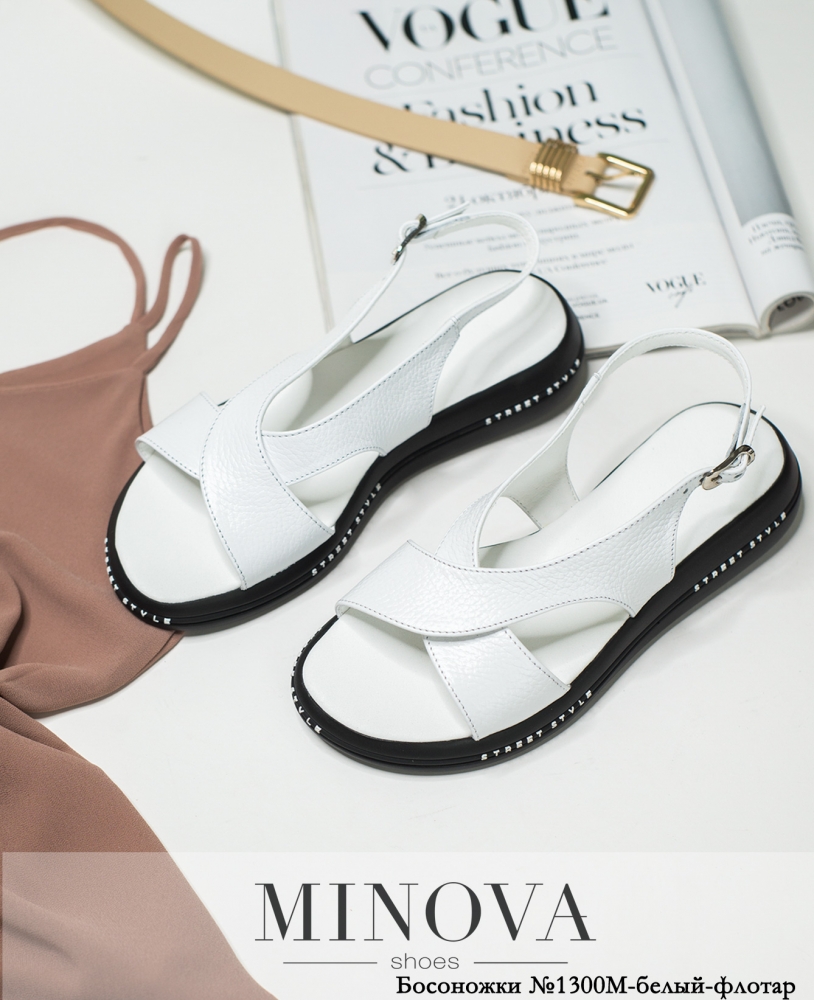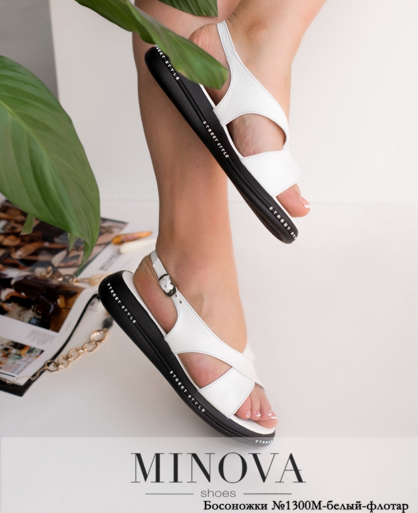 Изящные босоножки из натуральной кожи, охватывающие ногу кожаными лентами крест-накрест. Застёжка с маленькой пряжкой - на щиколотке сбоку. Подошва плотная, гибкая, с декором и рифлением сбоку.