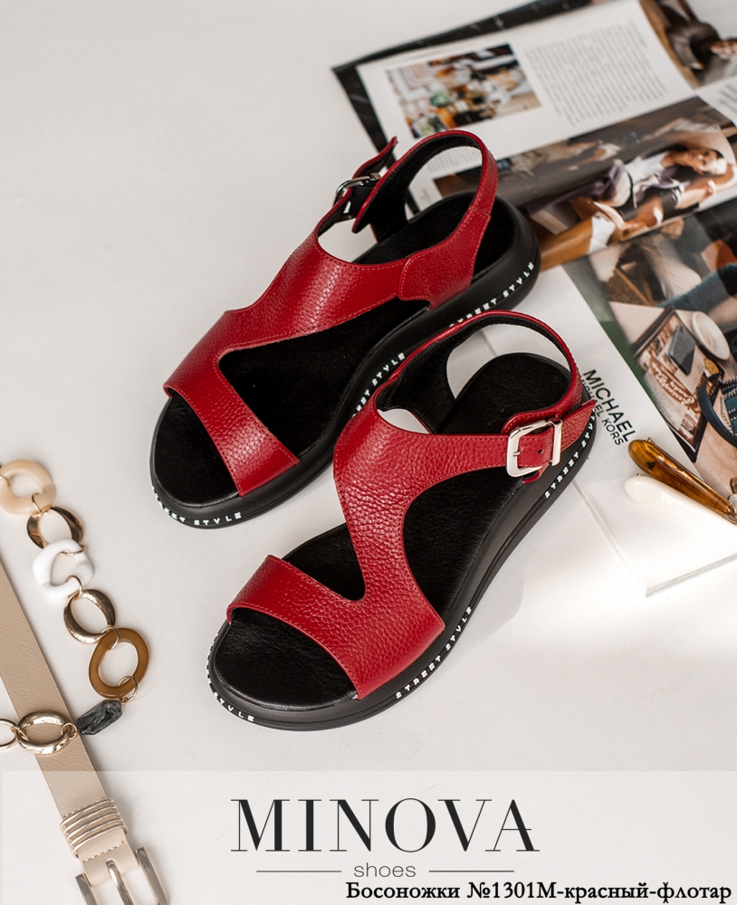 Босоножки №1301М-красный-флотар