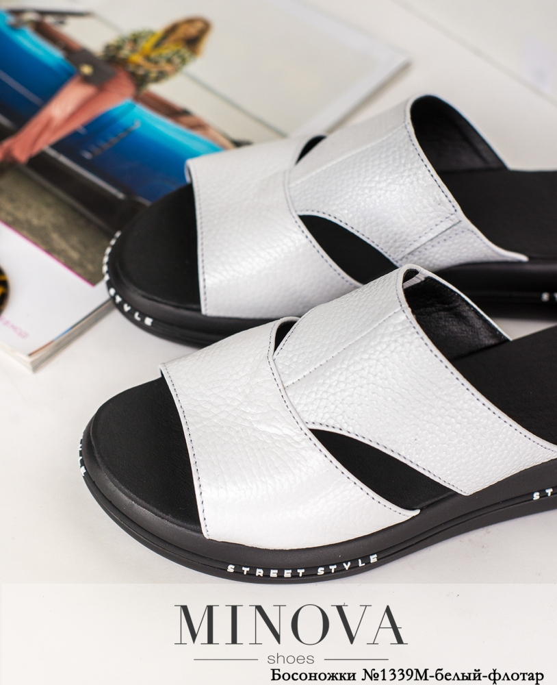 Минималистичные босоножки для повседневного гардероба, с закрытым подъёмом и прорезями по бокам, выполнены из кожи, пятка и носок открытые. Подошва литая, устойчивая, декорирована по боковой поверхности.