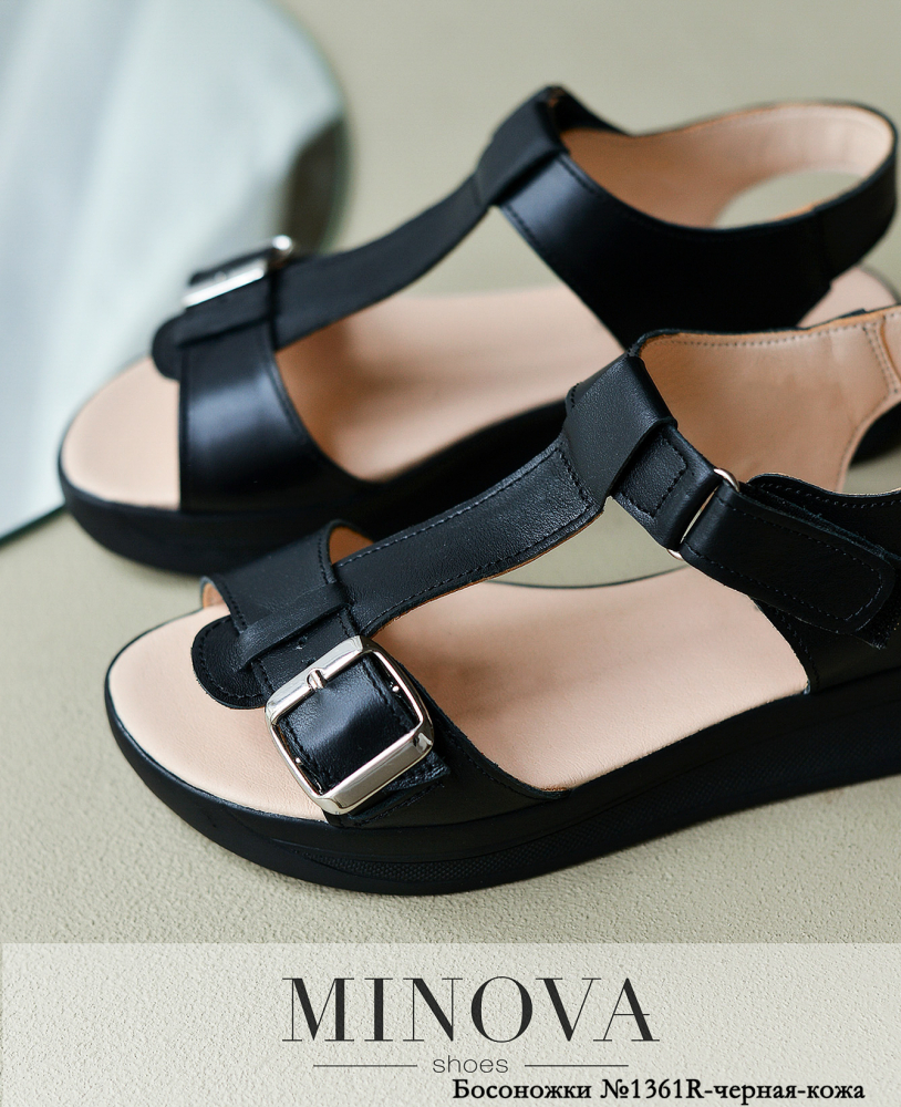Босоніжки №1361R-черная-кожа