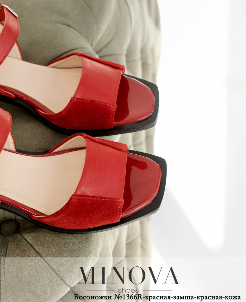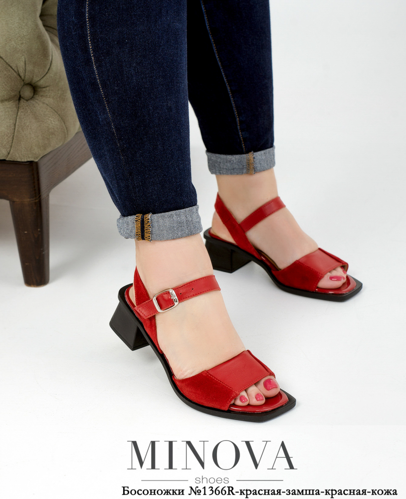 Босоножки №1366R-красная-замша-красная-кожа