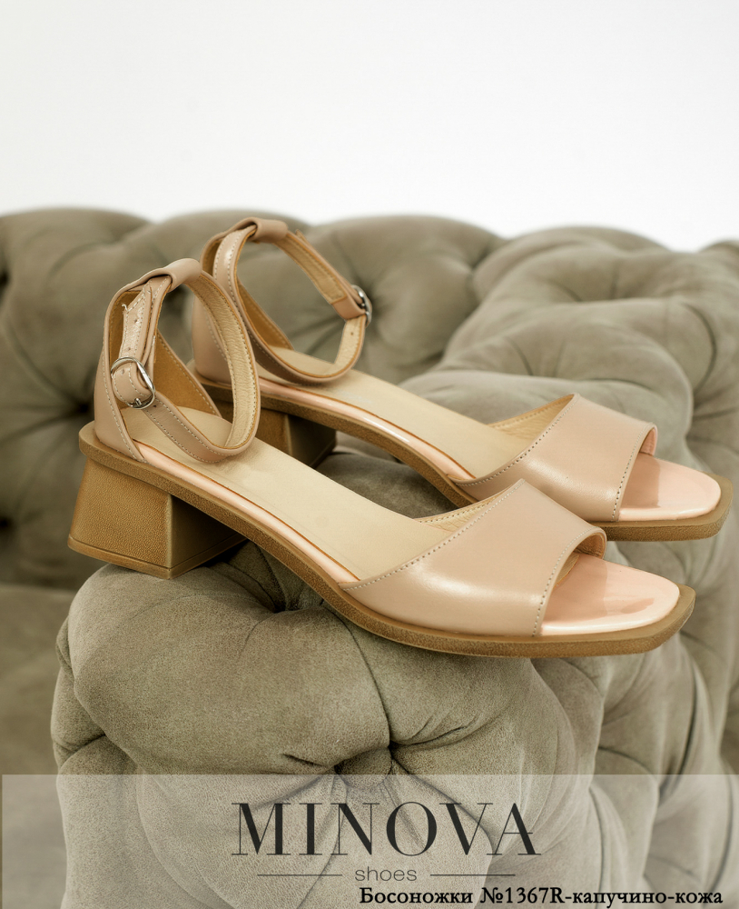 Классические кожаные босоножки на светлой подошве и небольшом устойчивом каблуке. Застегиваются на тонкий ремешок, изящно опоясывающий щиколотку.