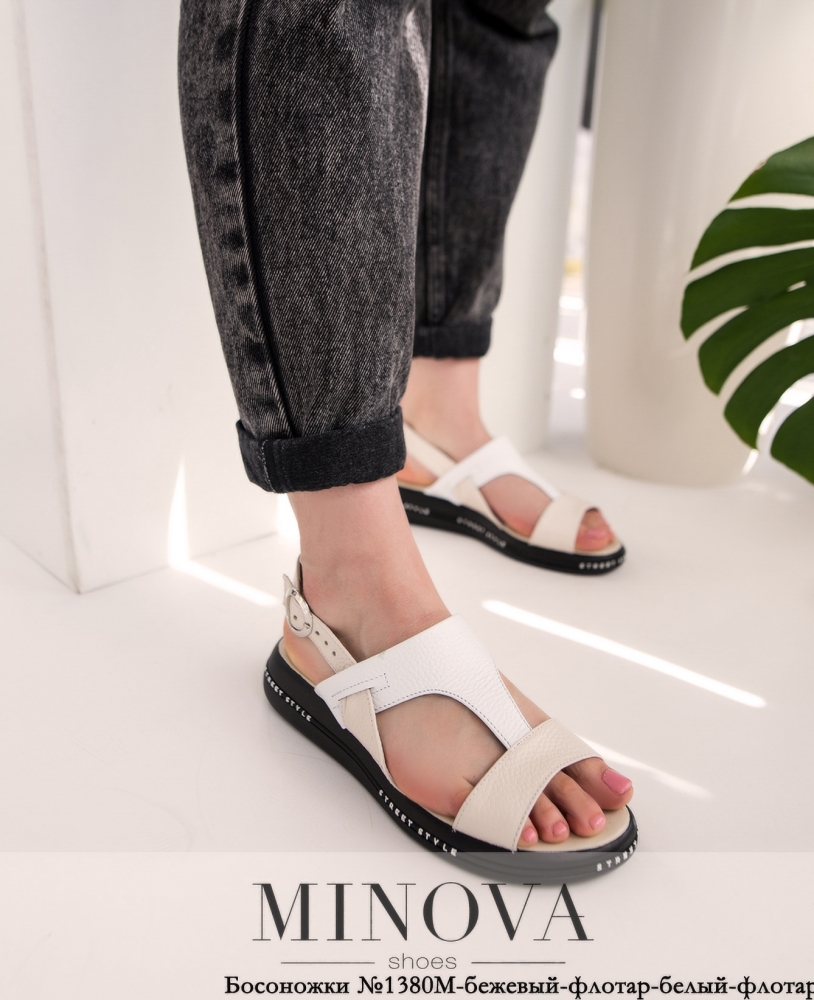 Босоножки №1380М-бежевый-флотар-белый-флотар