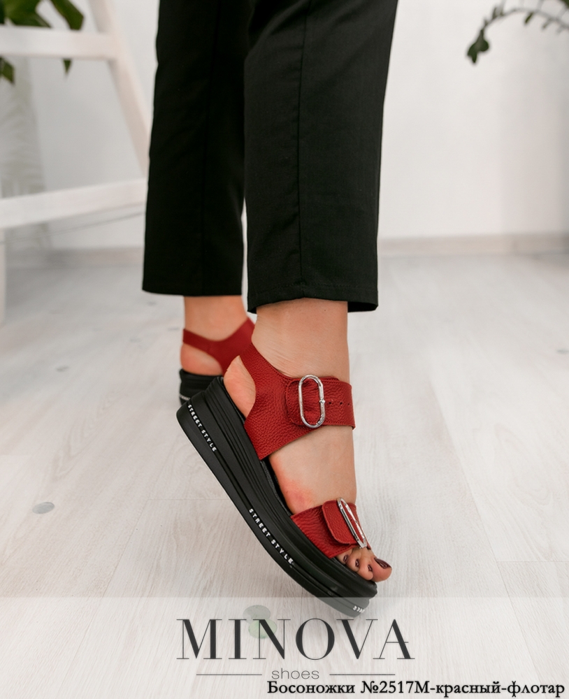 Стильные и удобные босоножки с двумя поперечными ремешками с пряжками. Изготовлены из натуральной кожи. Подошва гибкая, плотная, высокая, с декоративной окантовкой.