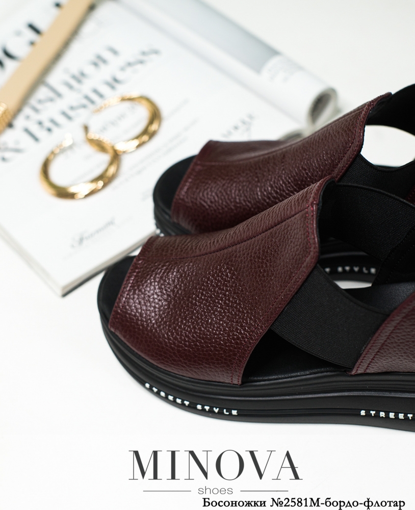 Стильные босоножки из натуральной кожи, закрывающие подъём и щиколотку, без застёжек, по бокам - вставки плотной резинки. Носок и пятка открытые. На устойчивой литой рифлёной подошве, с декором по боковой поверхности.