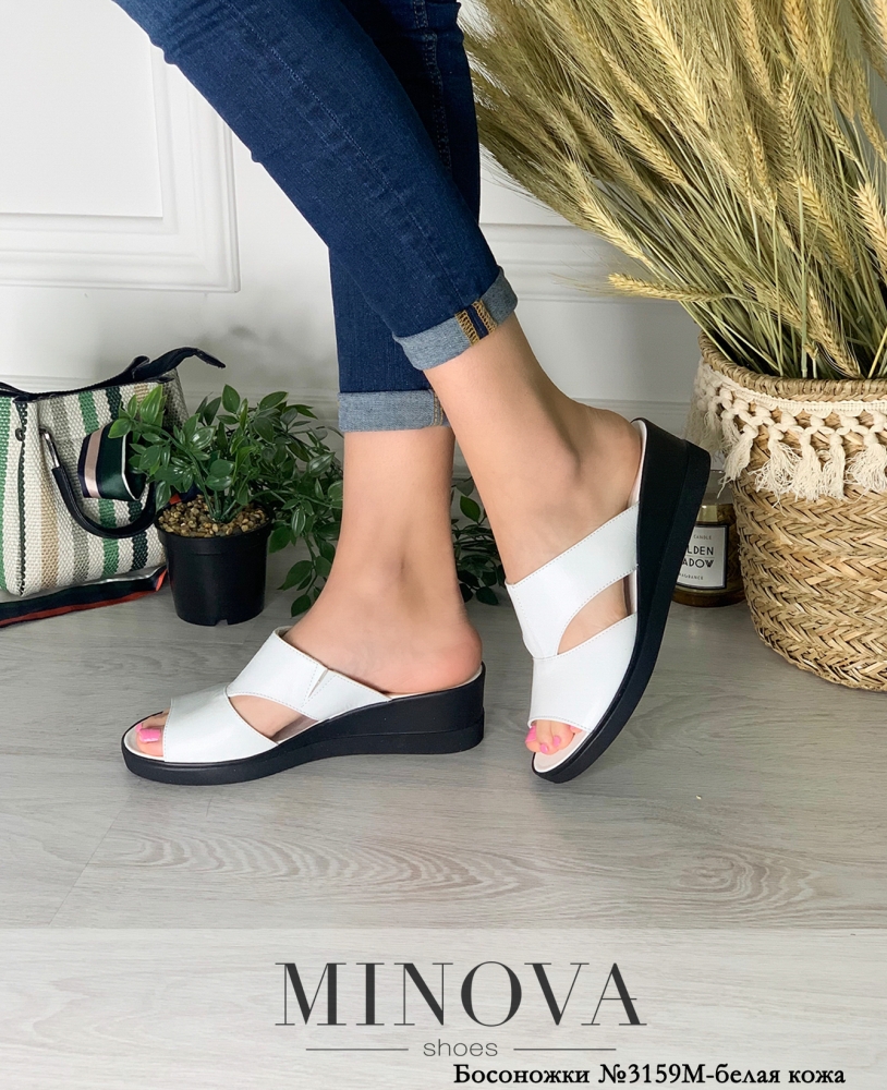 Кожаные шлепанцы на танкетке. Шлепанцы из цельного полотна оформлены вырезами по бокам.