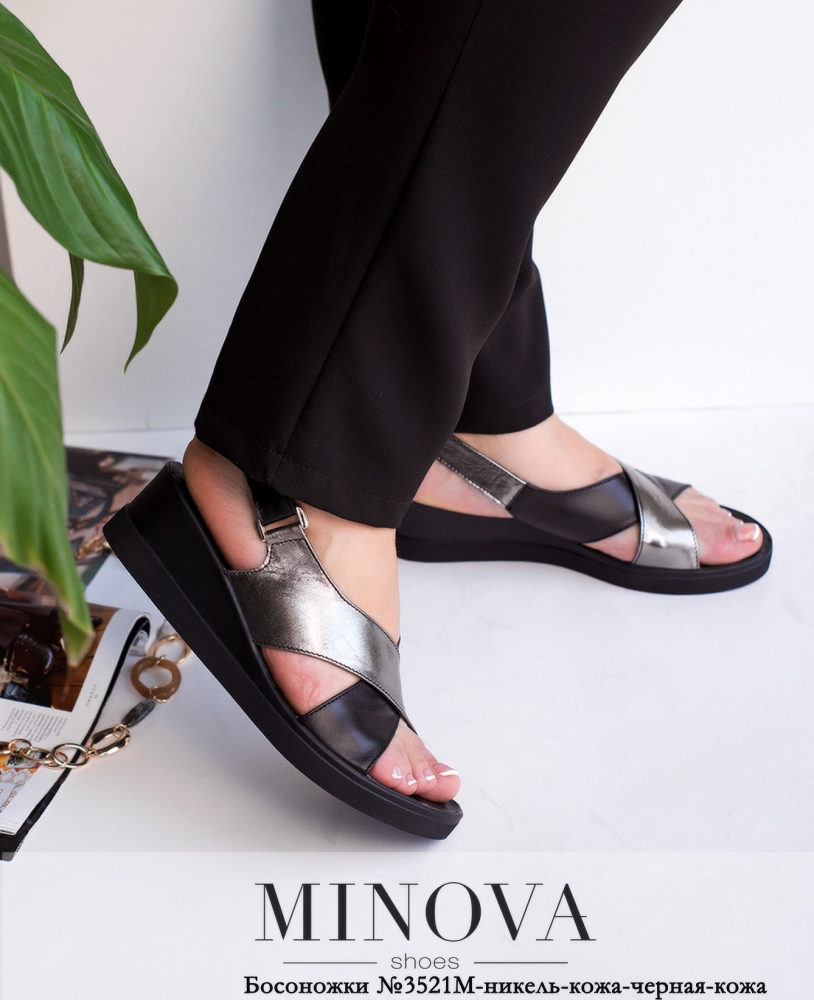 Удобные и нарядные босоножки из натуральной кожи, с застёжками-липучками на щиколотке. Носок и пятка открытые. Танкетка невысокая, устойчивая.
