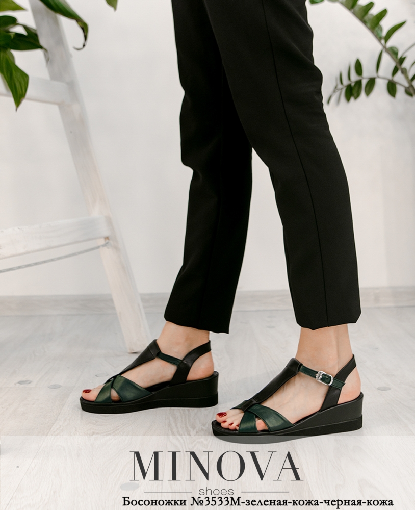Оригинальные и очень удобные босоножки на невысокой танкетке, с широкой продольной лентой на подъёме. Выполнены из мягкой натуральной кожи. Застёжка - на щиколотке. Носок и задник открыты.