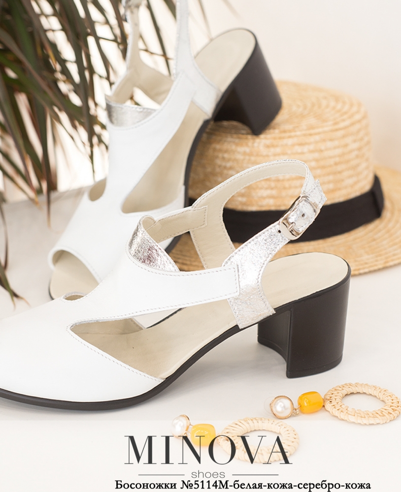 Оригинальные и нарядные босоножки на устойчивом каблуке средней высоты, выполнены из натуральной кожи, без задника и носка, застёжка - на ремешке на щиколотке.