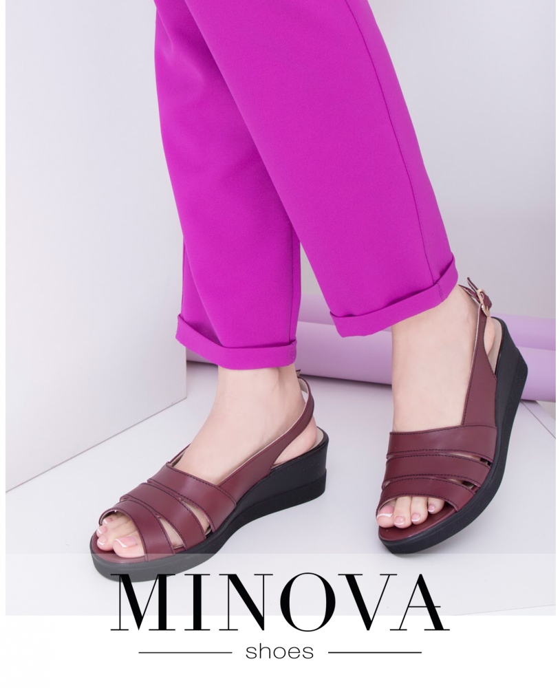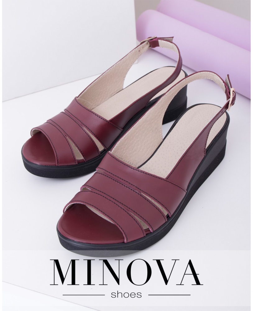 Кожаные босоножки на танкетке с открытой пяточкой. Босоножки состоят из трех сшитых полос застегиваются на перепонку с пряжкой под щиколоткой. Внутри кожаная стелька.