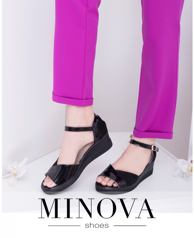 Кожаные босоножки на танкетке с закрытой пяточкой. Босоножки из комбинированного материала застегиваются на перепонку с пряжкой. Внутри кожаная стелька.