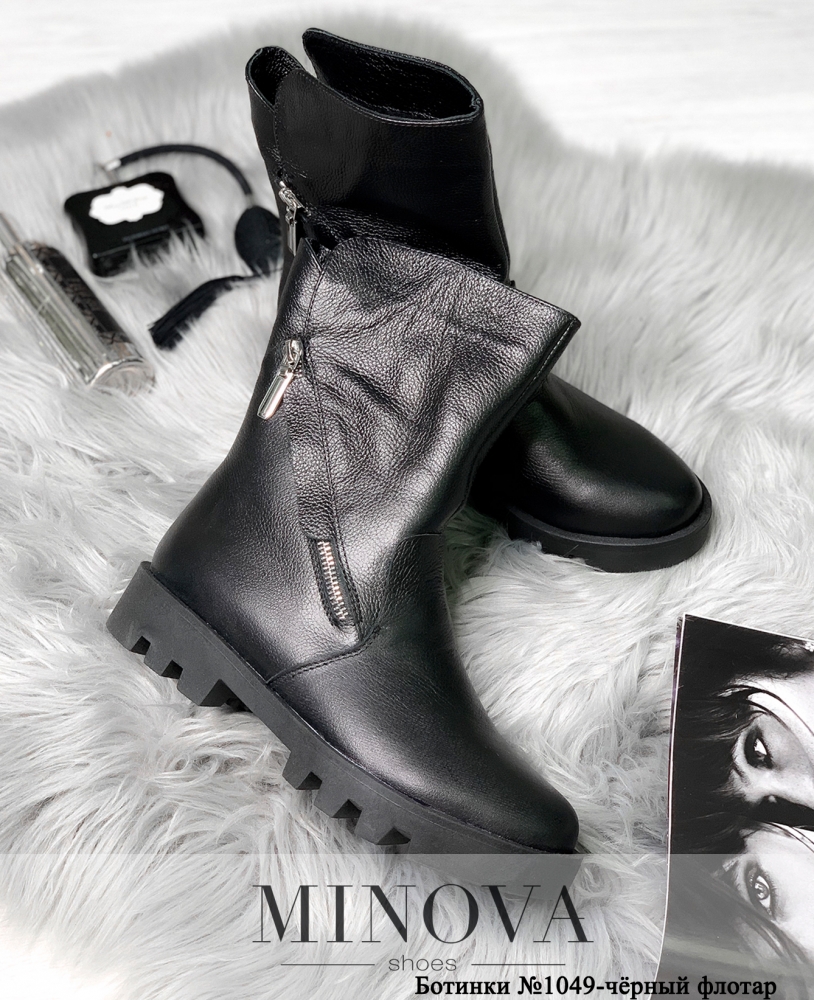 Демисезонные высокие ботинки из натуральной кожи, для повседневного городского гардероба – в новом каталоге женской обуви от Minova. Ботинки нестандартного фасона: по бокам две рабочих молнии, частично прикрытых широким язычком на подъёме. Носок отрезной. Внутри утепление байкой. Каблук невысокий, рисунок протектора с очень крупной ребристостью, поэтому их можно носить в снегопад или в гололёд. Можно выбрать модель из замши или гладкой кожи, в тёмных глубоких оттенках, которые будут сочетаться с любыми цветами наряда.