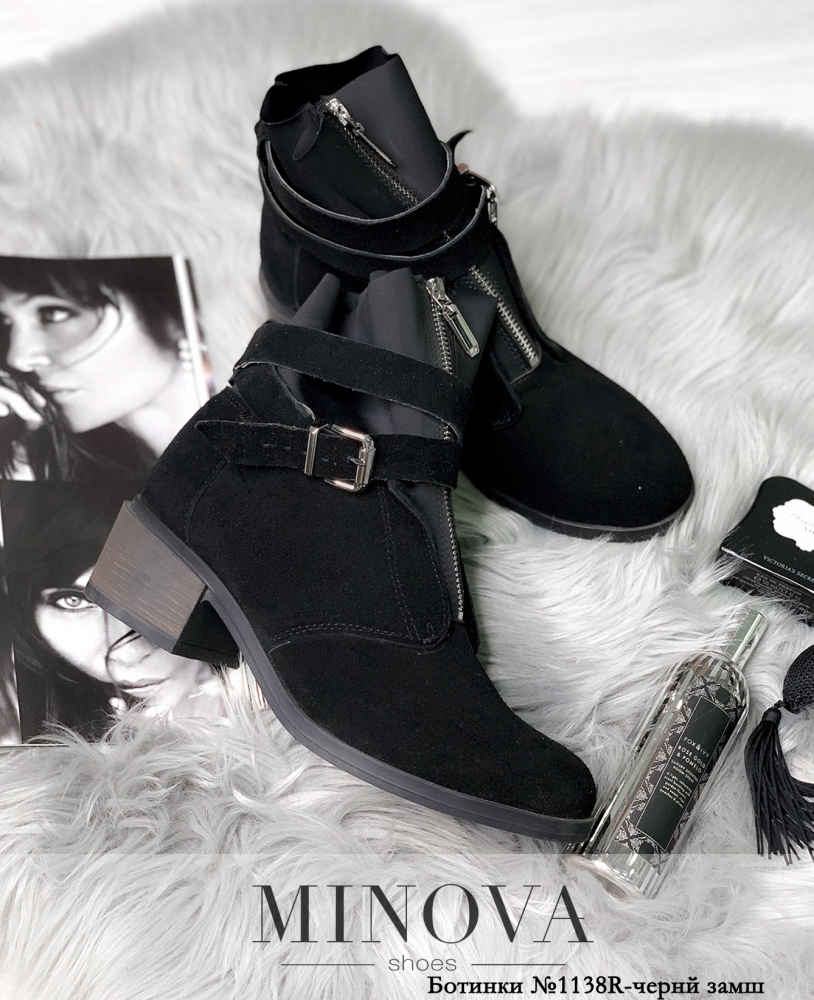 Симпатичные демисезонные ботинки от Minova в новом каталоге женской обуви. Ботинки из натуральной кожи – гладкая, замша и флотар. Застёгиваются на молнию, расположенную по центру подъёма, включая тканевой манжет. Молния слегка прикрыта кожаными накладками по бокам. Манжет из плотного материала, на нём – ремешок в два охвата, регулируемый. Каблук немного светлее основного тона, невысокий, устойчивый, квадратной формы. Внутри утепление байкой. Ботинки такого фасона впишутся в повседневный гардероб благодаря тёмной расцветке и привнесут в него нотку нарядности. Можно носить с юбкой или джинсами, а также сочетать с деловым костюмом.