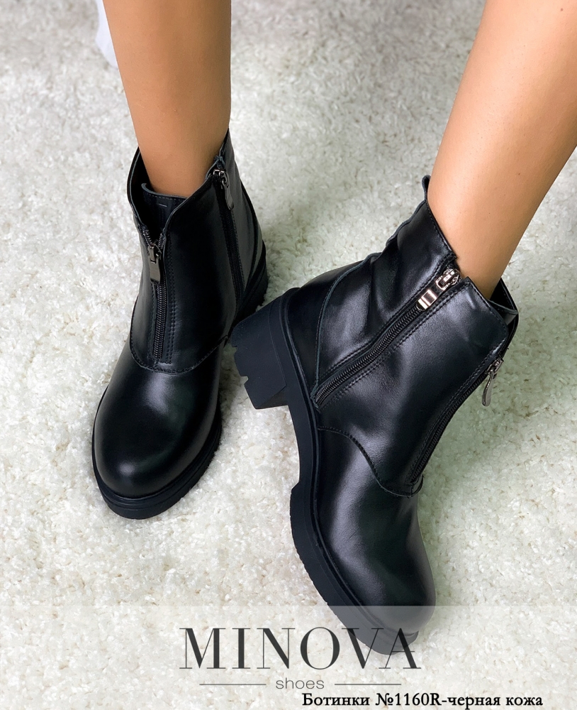 Очень удобные и идеальные для городского образа ботинки – в новой коллекции женской демисезонной обуви от Minova. Модель выполнена из натуральной мягкой кожи, гладкой или замшевой. По внутренней стороне и спереди на подъёме – рабочие змейки. Ботинки утеплены байкой. Задник и носок – отрезные, сзади сверху маленькая петелька для удобства. Каблук средней высоты, широкий, устойчивый, с крупноребристым рисунком протектора. Подошва гладкая. Такая модель в тёмных оттенках будет хорошо сочетаться с вашим повседневным гардеробом.