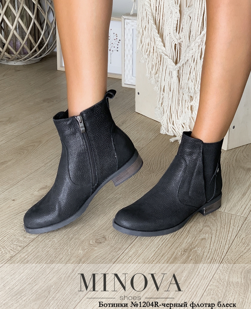 Очень привлекательные благодаря своему оригинальному крою ботинки-челси – в новом каталоге женской обуви Minova. По внешней стороне – вставка из плотной резинки, доходящая почти до подошвы. Модель выполнена из мягкой и долговечной натуральной кожи в обработке флотар, есть и вариант из замши. Цвета осенние, тёмные, глубокие. На внешней стороне задника – маленькая круглая металлическая нашивка. Каблук невысокий, тёмно-коричневого оттенка, рисунок протектора с мелкой ребристостью и ромбиками по центру. Рабочая змейка расположена по внутренней стороне голенища. Хорошо впишутся в ваш повседневный образ.