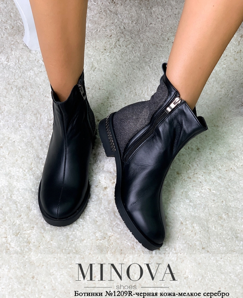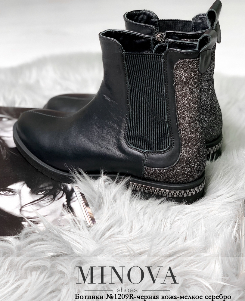Черевики №1209R-чорна шкіра -дрібне срібло
