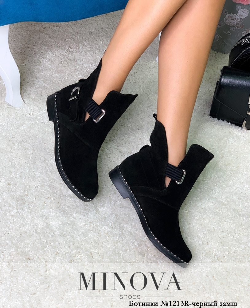 Свободный подъём представленной модели демисезонных ботинок от Minova понравится девушкам, которые любят заправлять джинсы в ботинки и носить тёплые носочки. Модель «мужского» фасона, очень стильная, без застёжек, но легко надеваются за счёт особенностей кроя. Передняя часть в виде широкого язычка свободно регулируется с помощью подшитых по бокам ремешков. Ремешок пропущен через укреплённое металлическим люверсом отверстие. Сбоку по внешней стороне – декоративный ремешок с пряжкой, но при желании его тоже можно регулировать. Рант подошвы декорирован блестящими металлическими заклёпками. Каблук совсем не высокий, подошва гибкая. Ботинки утеплены байкой и будут удачно сочетаться с вашим повседневным гардеробом.