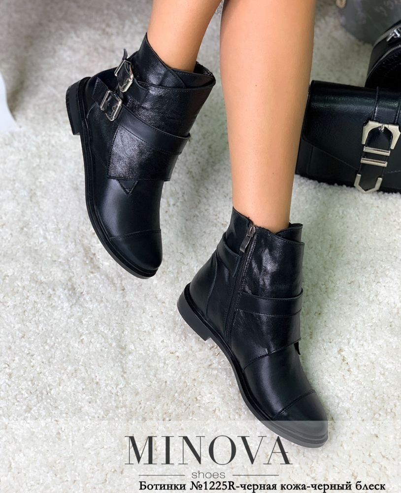 Черевики №1225R-чорна шкіра -чорний блиск