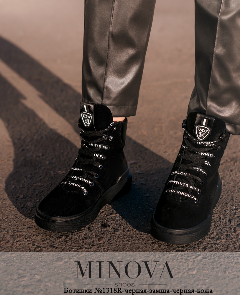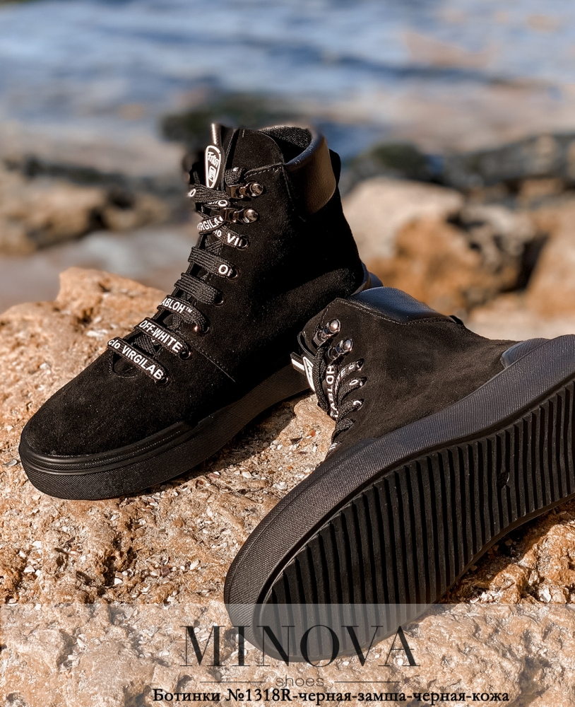 Ботинки №1318R-черная-замша-черная-кожа