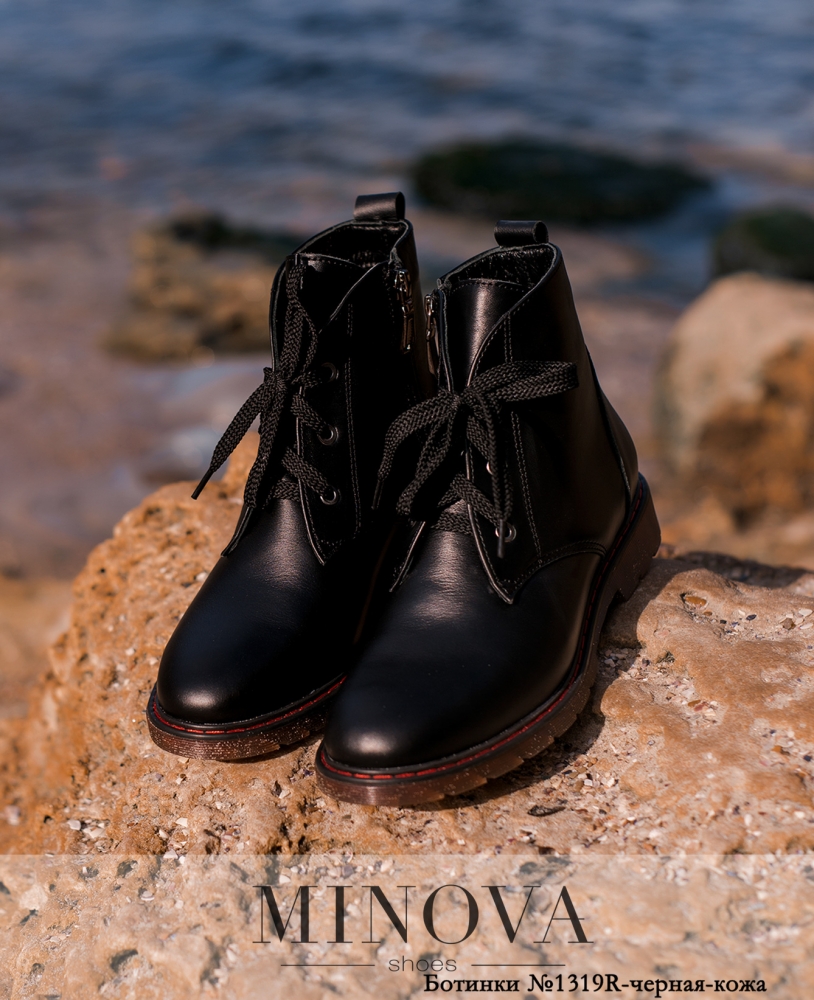 Стильные ботинки с утеплением, изготовлены из натуральной кожи. На подъёме - шнуровка, под ней - язычок. Отверстия шнуровки укреплены люверсами. На внутренней стороне - рабочая молния. На заднем пояске - петелька. Подошва полупрозрачная, гибкая, с поперечным рифлением. Прошита контрастной строчкой.