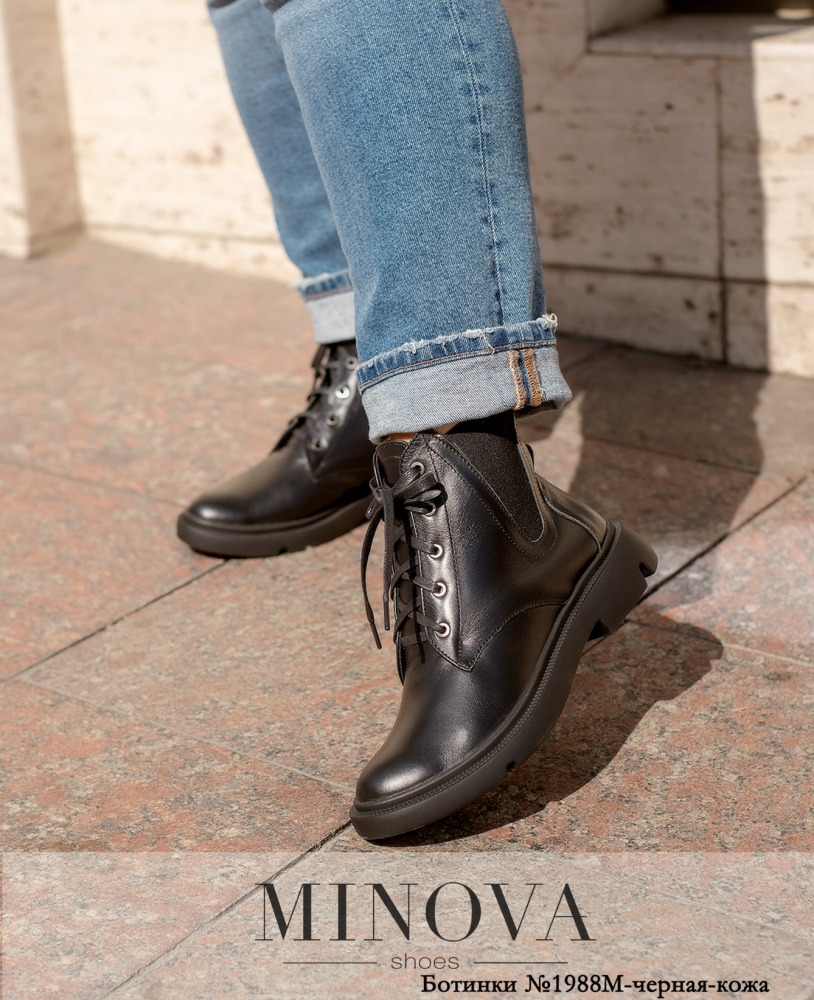 Ботинки №1988М-черная-кожа