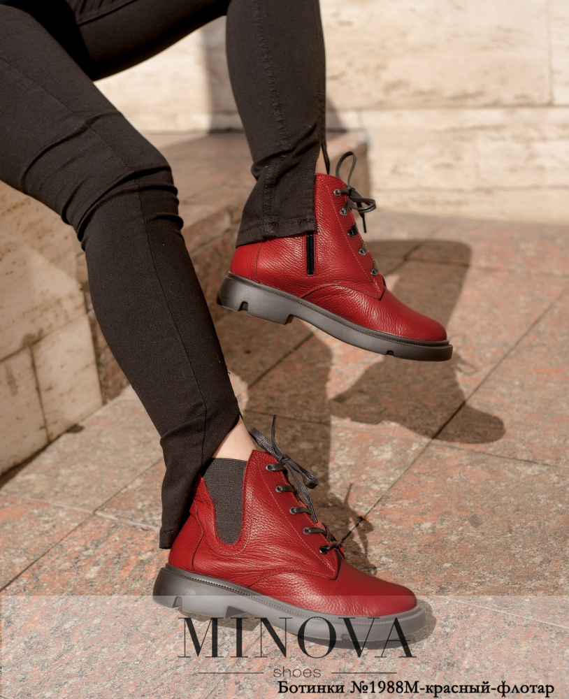 Удобные высокие ботинки выполнены из мягкой натуральной кожи. Застёжки - молния на внутренней стороне голенища и шнуровка на подъёме, отверстия укреплены люверсами. Под шнуровкой язычок. Подошва рифлёная.
