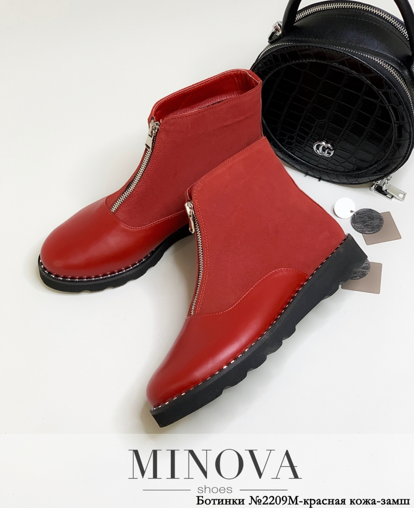 Минималистичные и очень удобные полуботинки с высокими берцами от Minova отлично подойдут для городского стиля – особенно в прохладную погоду. Носок визуально отделён от основной части, в некоторых моделях выполнен из кожи другого типа. От носка до штаферки – рабочая змейка. Подошва плоская, уплотнённая, с крупноребристым протектором, по канту декорирована металлическими вставками. Можете выбрать глубокие тёмные оттенки или яркие: белый или красный; в каталоге представлено несколько разнообразных цветовых решений этой модели. Хорошо будут смотреться с джинсами или брюками.