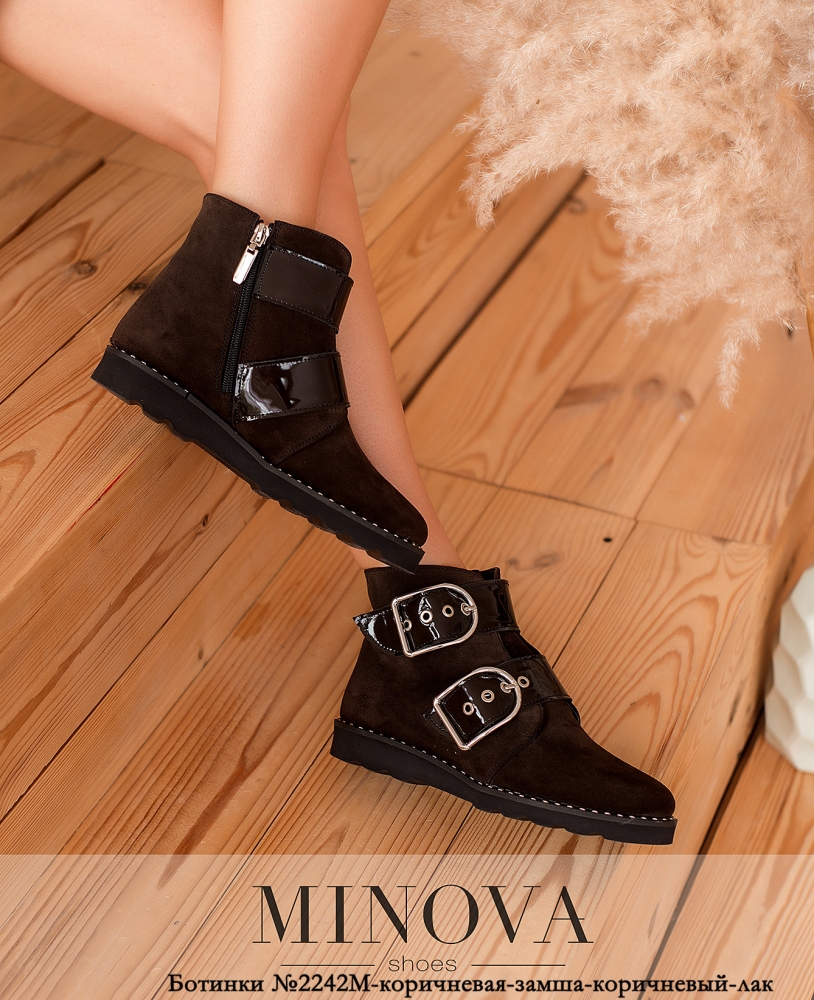 Ботинки №2242М-коричневая-замша-коричневый-лак
