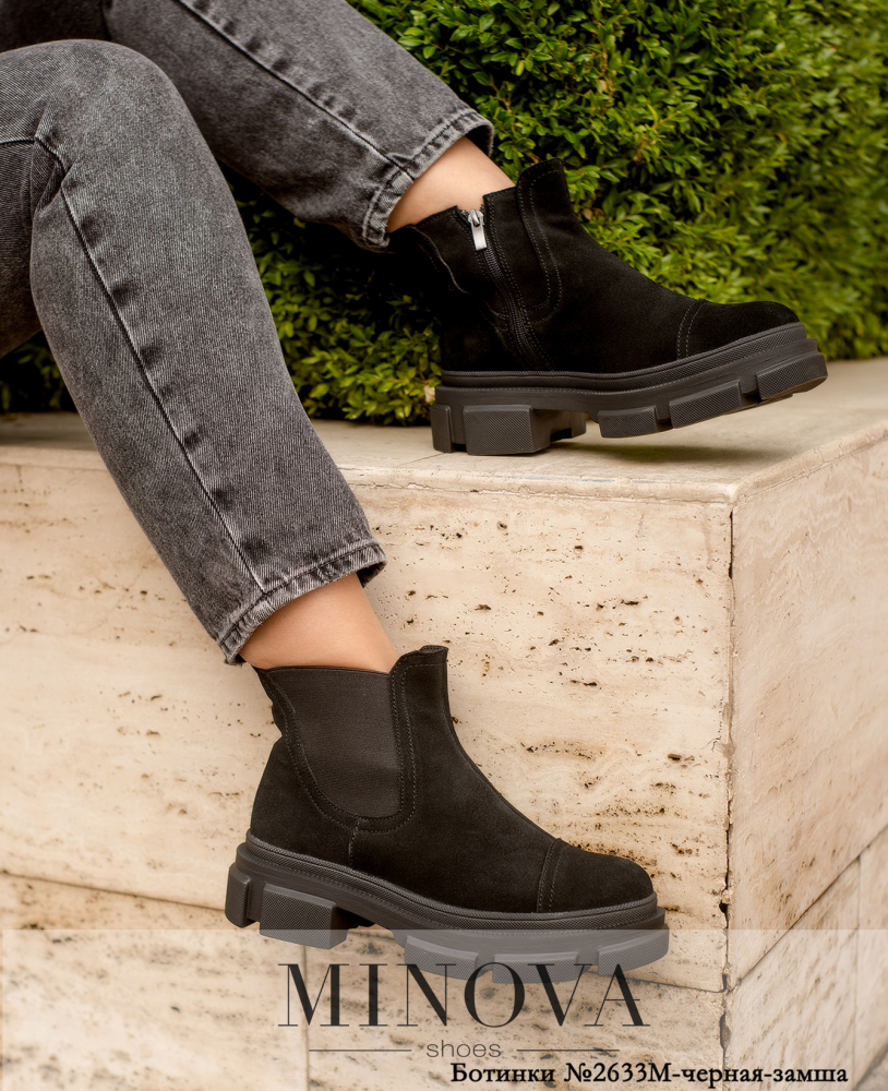 Стильные высокие ботинки-челси из натуральной мягкой кожи с отрезным носком. По внутренней стороне - рабочая молния, по внешней - резинка. Подошва плотная, высокая, с фигурным рифлением.