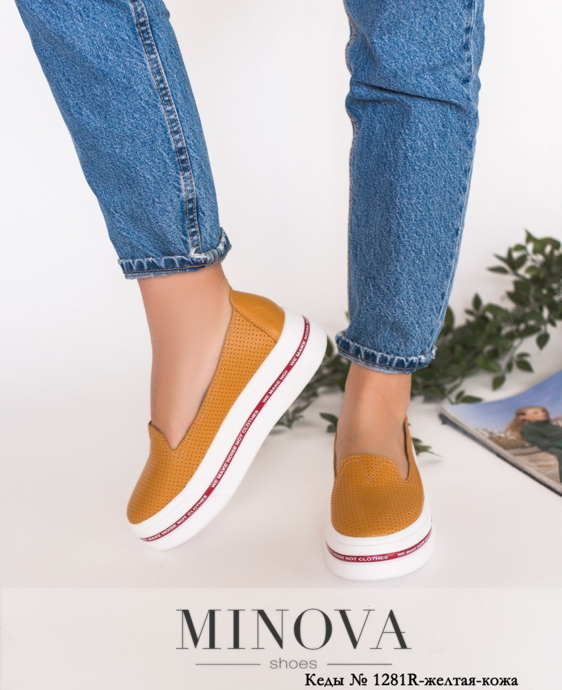 Кеды №1281R-Желтая-Кожа