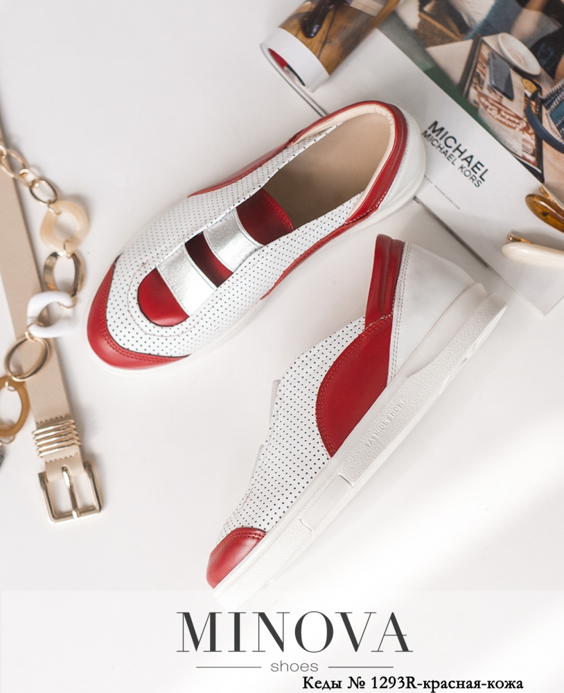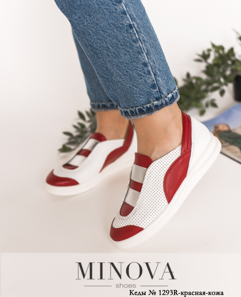 Кеды №1293R-Красная-Кожа-Белая-Кожа