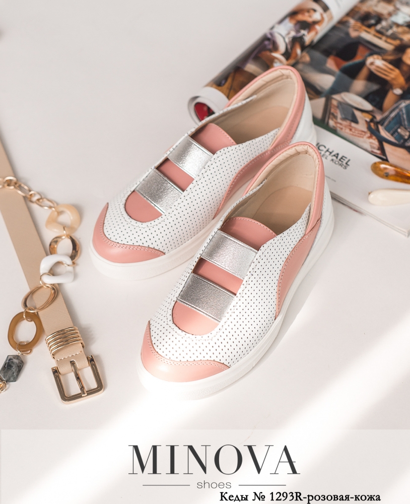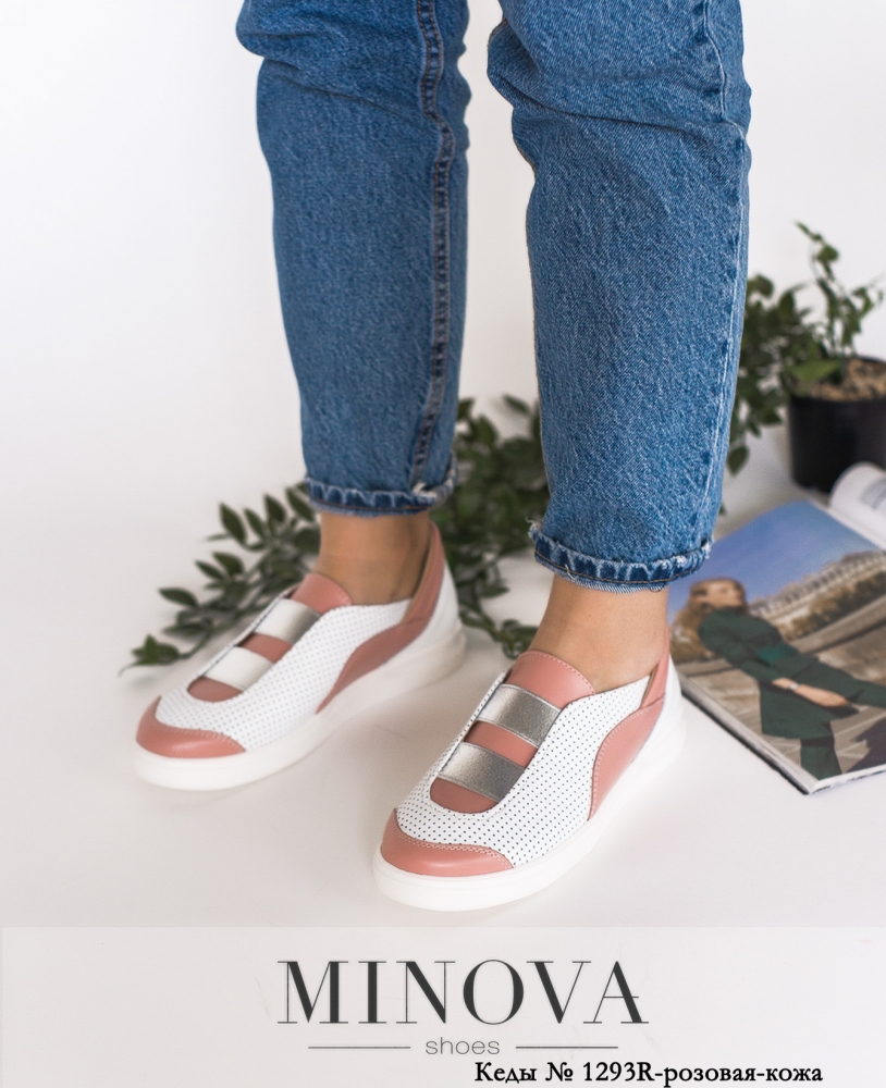 Кеды №1293R-Розовая-Кожа-Белая-Кожа