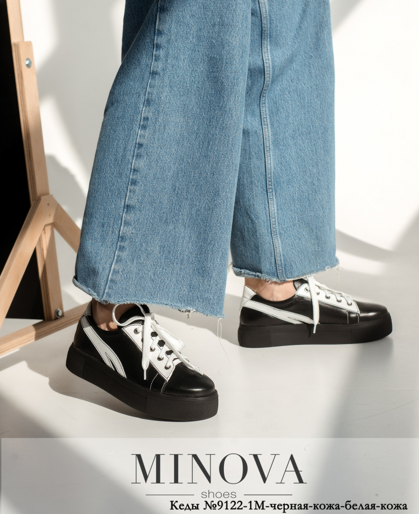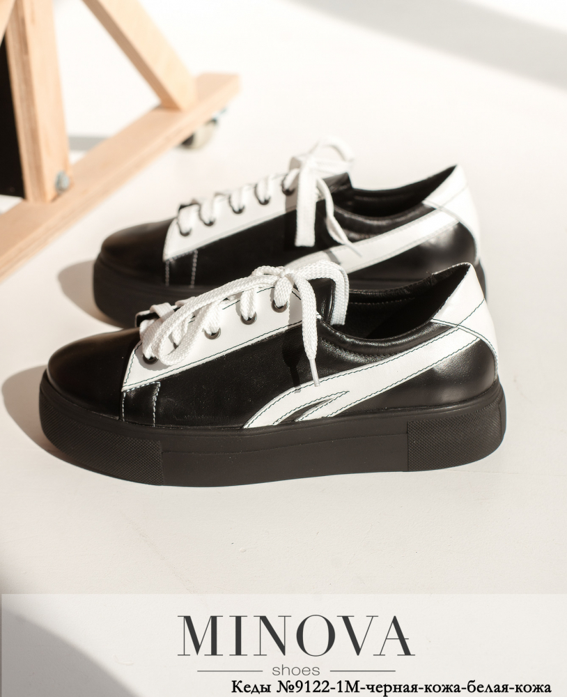 Кеди №9122-1М-чорна-шкіра-біла-шкіра