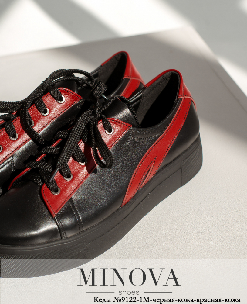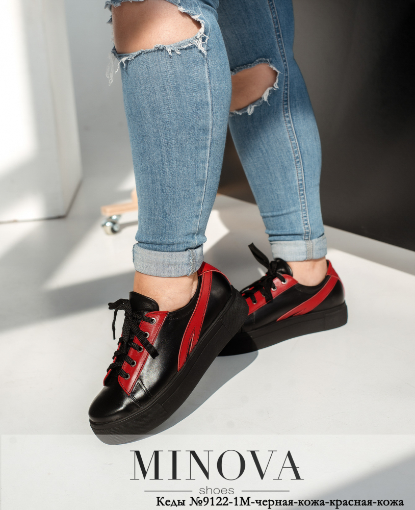 Кеди №9122-1М-чорна-шкіра-червона-шкіра